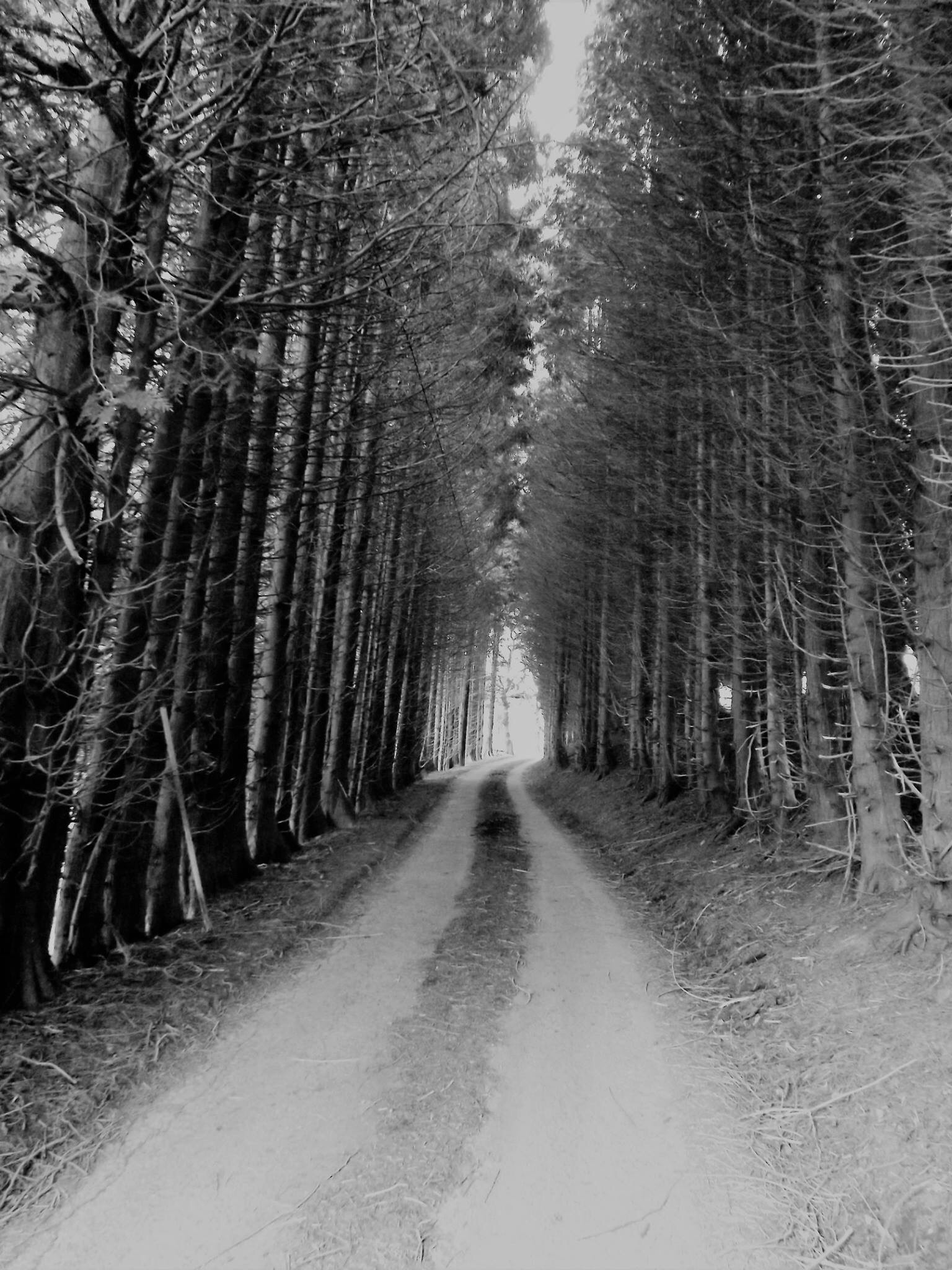 I steer off the main road and begin following a slow moving tractor that is pulling a large metal trailer, a double decker bus for sheep. The road is winding and the surrounding green rolling hills lead up to thick forests and glades. The trees have a soft misty appearance, as if swirled on a canvas in diluted watercolours by a paintbrush dipped in vivid greens, pale oranges, dusky purples and earthy browns. At one point, tall thick trees enclose us on either side, the light fading, the road narrowing to a single twisting track. At the end of the tunnel of trees is an opening through which light shines brightly.