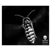 Imagine you have a line of 3 people in front of you. If you wanted to focus on all 3 you would need to use a high F number to bring those blades in tight, create a small aperture opening and deepen your depth of field. If you do this on your camera you should see the shutter number change accordingly. As less light comes in the shutter speed will slow to compensate by allowing more light back in. If, however, you only wanted the first person in focus and the rest of the photo out of focus, or maybe a bokeh effect like the flower above, you would use a low F number to open the blades out to create a large aperture opening. Again, if you do this, you should see the shutter number change to a faster shutter to balance out the light requirements. This is, of course, assuming the first person is your focal point. If you wanted only the second person in focus of the 3 you would still use a shallow depth of field ie. F/2.8 but set your camera to focus on the 2nd person. This would cause the foreground AND background to blur but the mid ground to focus. As you can see with this wasp the depth of field is very shallow as the head is not sharp, nor is the background but the abdomen hairs and the food are very distinct. This is a shallow depth of field but with a mid point focus.